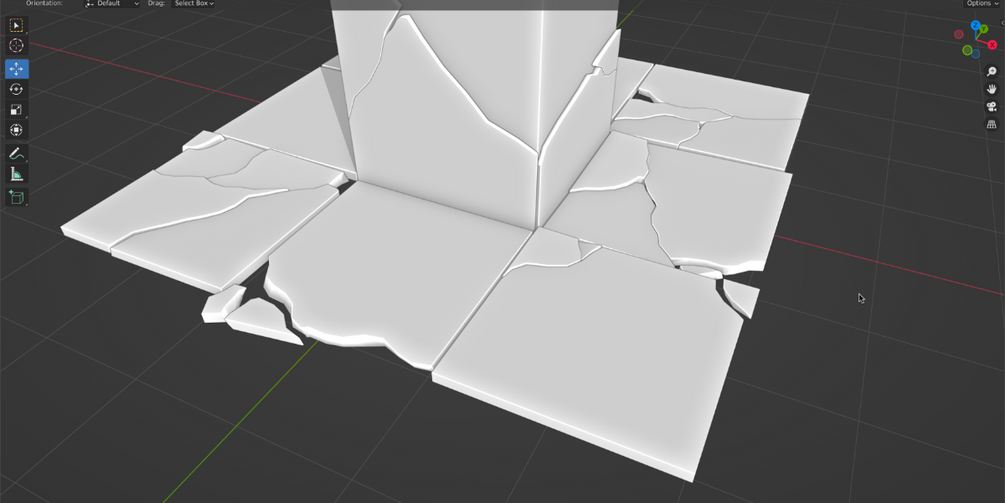 P.S. If you didn't see the cracked piece after operation, it means it flew away during the simulation. Press ctrl+Z to undo and try a different angle for the crack, or check for obstructed objects nearby.
